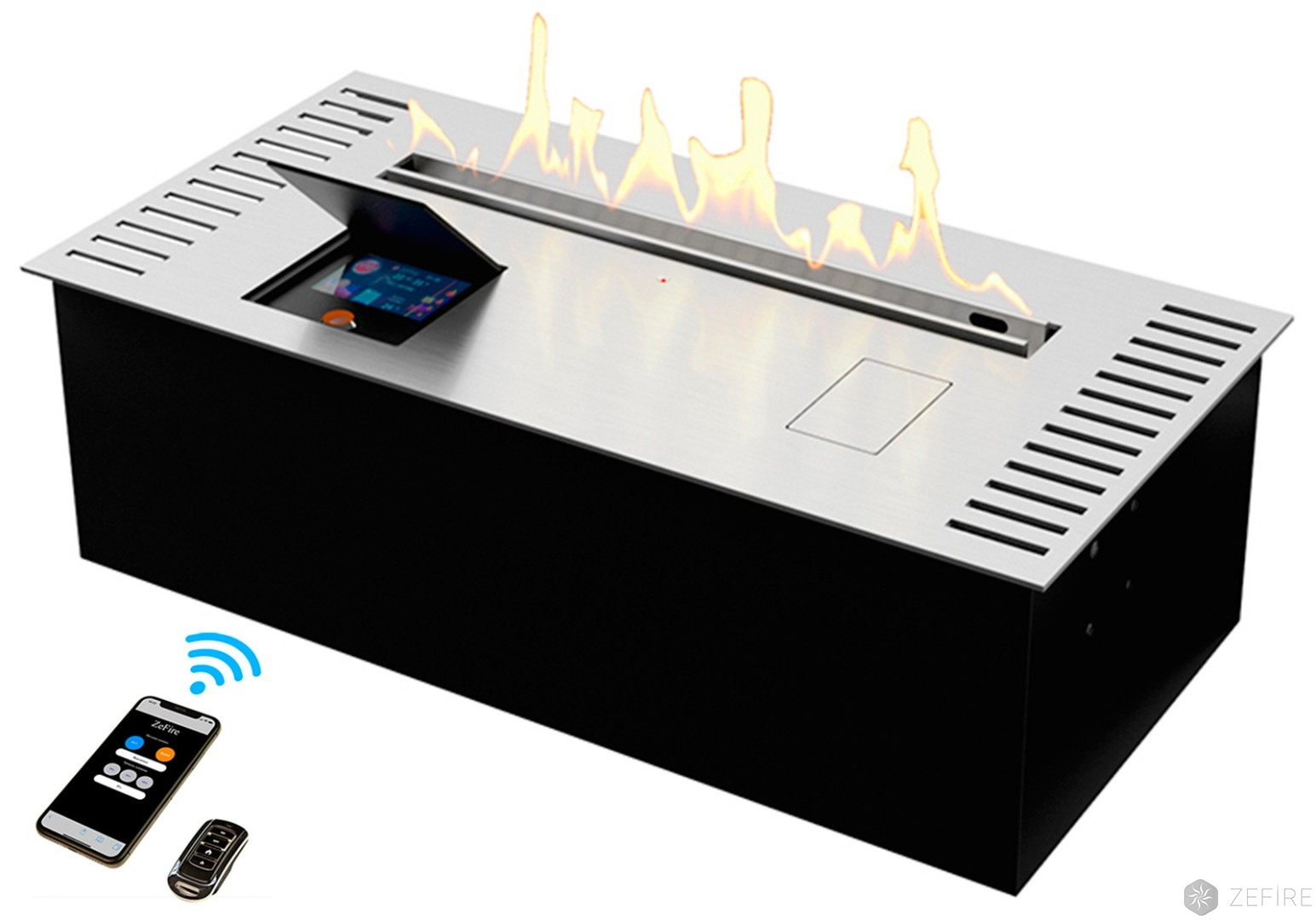 2) Встроенный Wi-Fi модуль, который создает точку для управления камином с помощью смартфона или планшета;