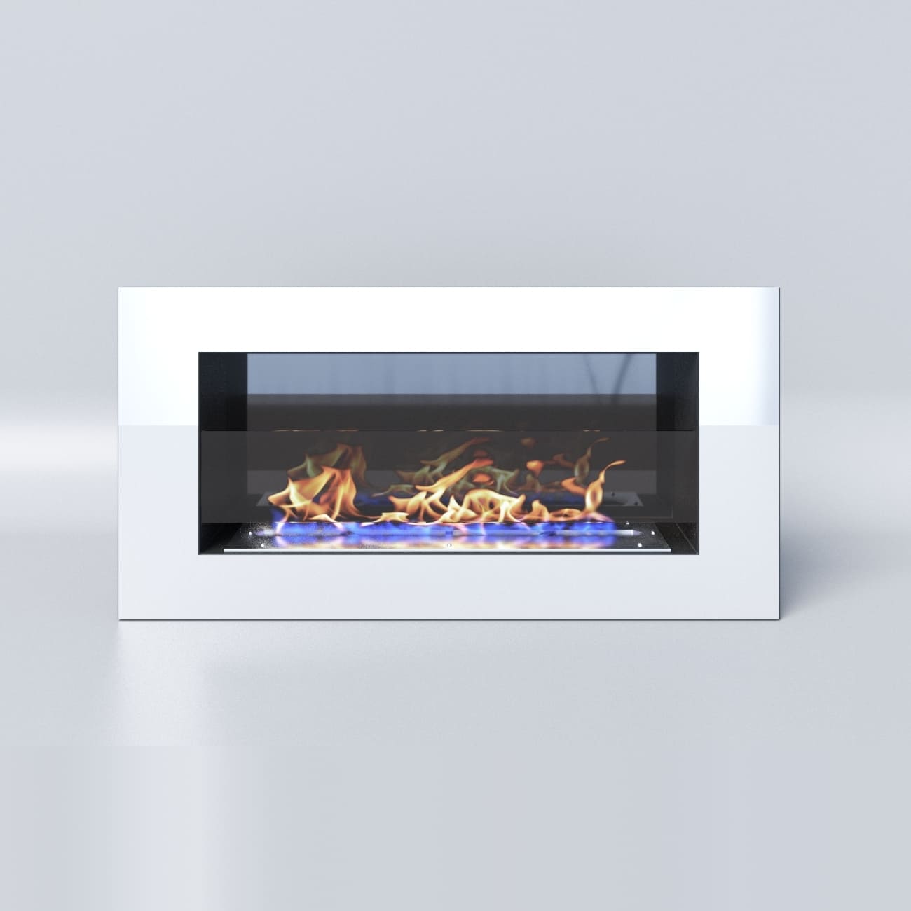 Декоративное стекло — крепится на всю заднюю стенку очага. За счет своего зеркального отражения, пламя визуально становится в 2 раза больше и кажется, что камин горит еще ярче.
