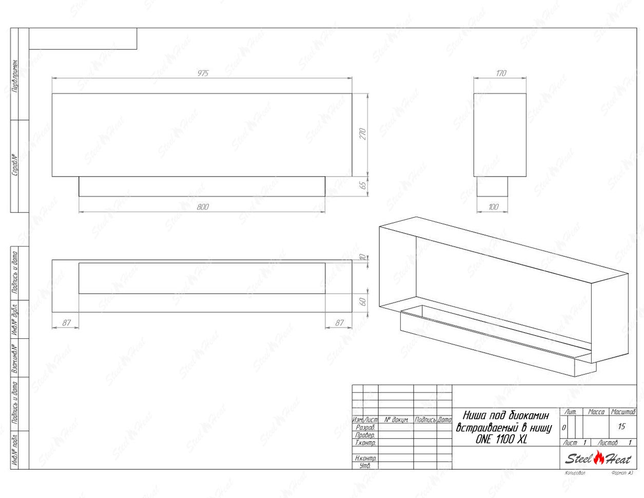 Встраиваемый Биокамин SteelHeat ONE-V 1100 XL предназначен для встраивания в глухие ниши из гипсокартона, кирпича, пеноблоков, бетона.