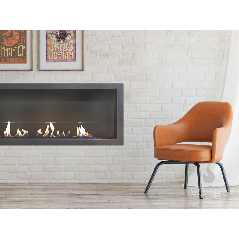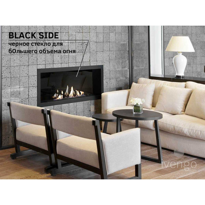 Встраиваемый биокамин Ivengo SLim – одна из наиболее популярных моделей.Благодаря тому, что горелка «спрятана» под днищем, очаг имеет небольшую высоту. Компактная, вытянутая по горизонтали, конструкция не будет визуально «опускать» потолок, как это нередко случается с крупноразмерными экокаминами.